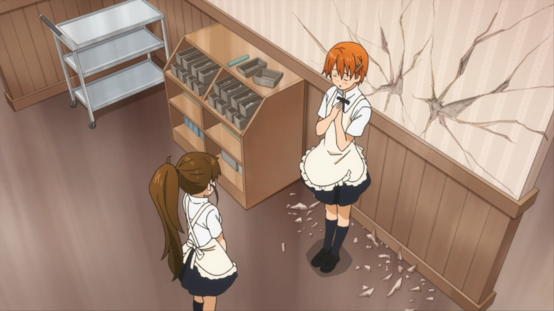 Taneshima is perhaps the greatest force, with her amazing rebound time against pretty much anything that goes wrong & her optimistic outlook on life. Furthermore, her energy is infectious to the rest of the cast, boosting up sad characters and acting as a friend and peacemaker to the entire staff of Wagnaria.