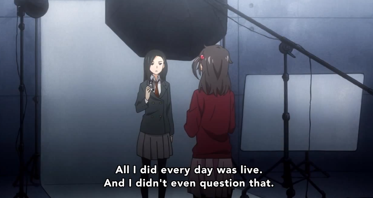 I Didn’t Question Living: What? As if living isn’t enough on its own? This is a pretty telling statement. WIXOSS isn’t just a hobby or a game to Iona; it’s her life. WIXOSS has replaced “just living” for her. Now that she’s found she can’t live for the sake of living, because WIXOSS is just that much better. Call it subtle marketing, but this is a pretty devastating message.