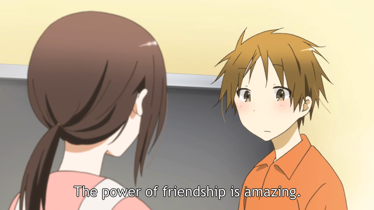 On this kind of discussion, Shogo falls into an interesting space, as he contradicts himself when talking to Hase and Saki. He tells Hase that it’s alright to not want to change the way things are, but later tells Saki that he pushed her, hoping to get her to change herself. And especially with Hase, who has been mired in indecisiveness and bashful worrying, Shogo should know better than anyone that the status quo can’t remain the status quo forever. After all, if you don’t change yourself, the world will change around you. Better to be the instigator than the reactor.
