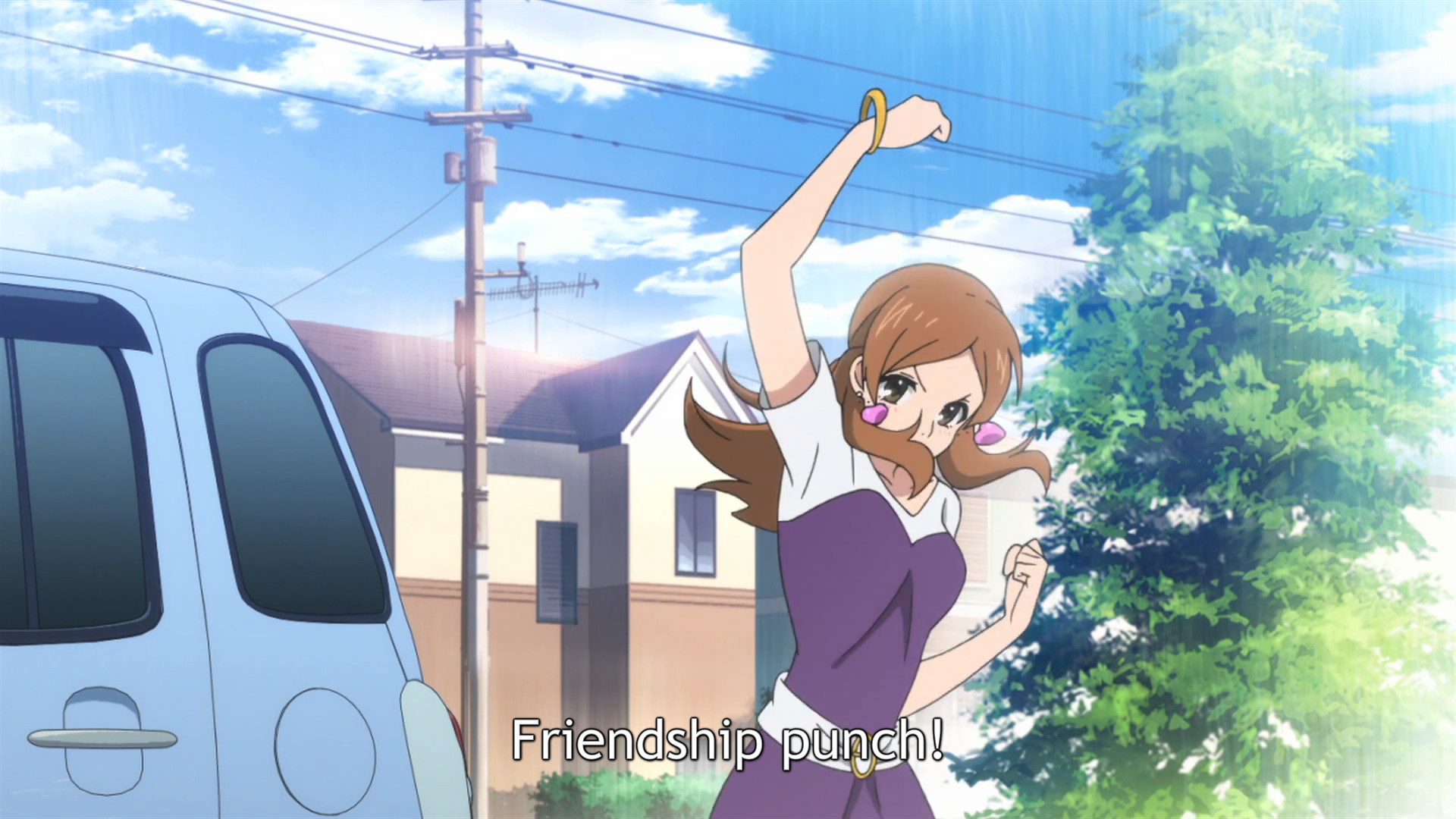 The ending of the episode was actually pretty funny, as the bad guy gets turned into an actor and looks like he’s about to cry: “Damn it! Everyone’s making fun of me!” I do have to give props to Takayama for figuring it out, and the shot where he jumped in between Noa and the attacker was pretty cool looking. Then he got stabbed, Sakurai took the bad guy out, and Iida says after it’s all done, “Phew, good thing the crowds didn’t panic!” Wait, what? One of your team members was a stamp book away from sustaining serious, potentially life-threatening injury and you’re glad the crowds didn’t panic? People in this show have some strange priorities.
