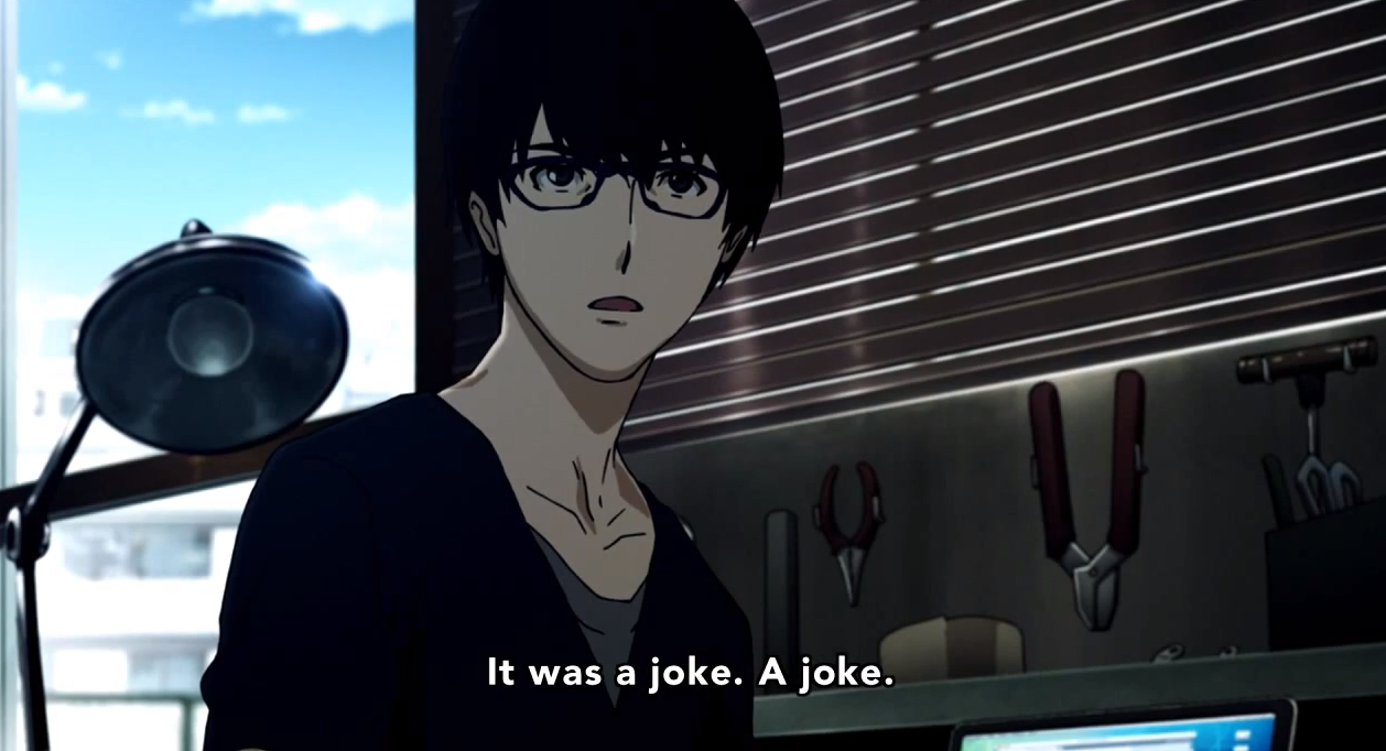 I noted back in episode 2, during the Mentos Green Tea Cola scene, that Twelve and Lisa were super cute together. There was more of that this week, and I think it goes to show that Lisa has a very peculiar and fascinating effect on the two boys. When she’s around, they automatically act much more like the kids they are (I mean, let’s be honest, she’s pretty cute and she at least tries to cook), even managing to squeeze a hilariously rote tsundere line out of Nine. And it’s not a coincidence that a clear (to us) reference to Lisa pops up in the next Sphinx video, as Twelve jokes, “I’m looking for a girlfriend who can make bombs and good food.”