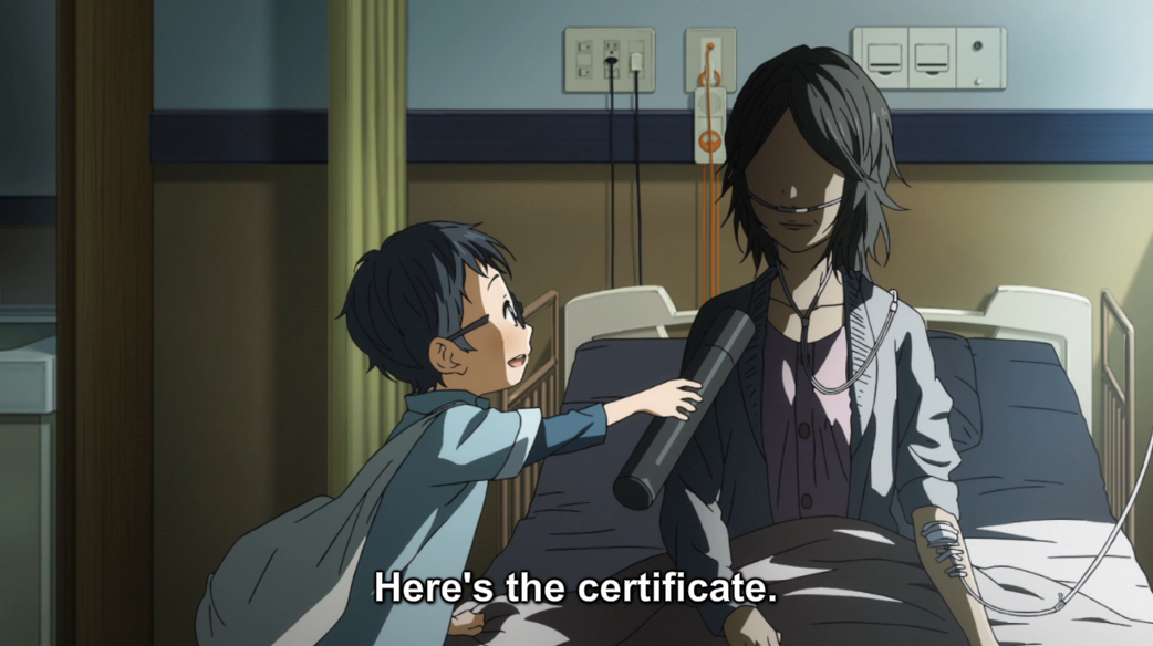 That’s a really interesting interpretation of the apparition that I hadn’t even considered. That’s really a compelling case in support of that particular visual representation of his trauma, but it seems that we are in agreement that it was overbearing. I talked elsewhere (on the CR forums, I think ) about the execution and how I really do feel like the show’s tendency to have everything be 110% dramatic 100% of the time really backfired here—if even just a few scenes had been toned down, the whole episode could have built up to that final, brutal (and painfully well-animated) scene. Instead, it was just a rush that felt more like the mother was “evil,” and less like she was a tortured soul. And while, yes, it is from Kousei’s perspective, he clearly didn’t see her as evil until the very end. And then she was gone.