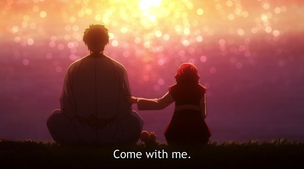 Their terse, playful exchanges, it seems, go back to the moment they met and there’s a nice symmetry between their meeting and parting words. And, just like Yona’s farewell to the villagers, it’s filtered through a warm, comfortable sort of lens. Which, I think, is pretty important in making Jaeha’s final decision to join Yona seem realistic and organic after all his protests. It also helps that Yona essentially lays out the entirety of the conflict—”You didn’t want to be bound by your destiny.“—which allows Jaeha to respond. He maybe be following his destined path, but he’s doing it out of his own free will. Which is, of course, the answer I’ve been campaigning for all along.