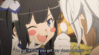 Danmachi Episode 1 No Sleep Published April 3, 2015 at 1040 × 576 in First Impressions: Spring 2015 Anime (Part 1) ← Previous Next →