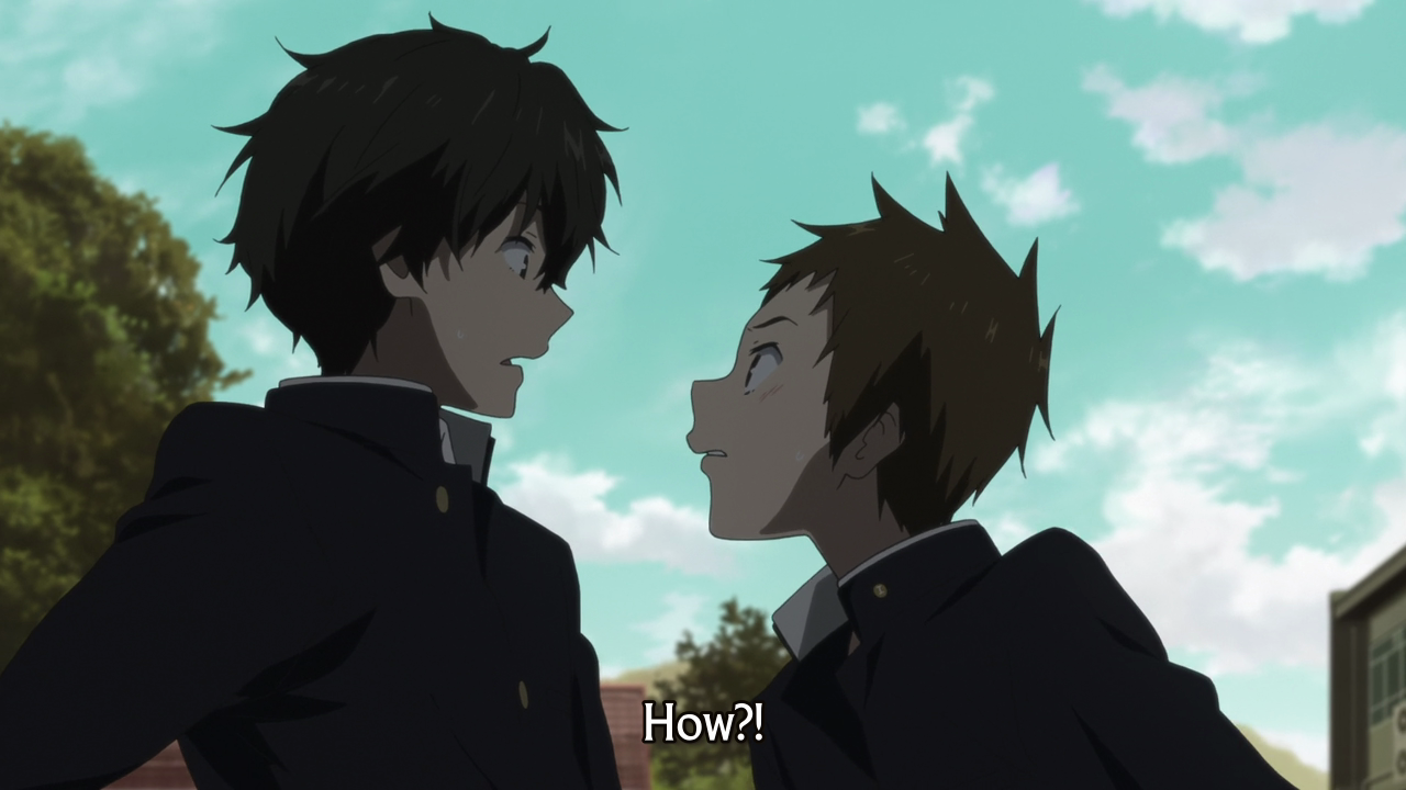Hyouka 16 Final Scene 8 Published December 13, 2015 at 1280 × 720 in Hyouka, Episode 16 ← Previous Next → (4/4) And the shots have become progressively darker—not just in lighting, but by the time we get here, the black of their uniforms has made the entire shot dark.