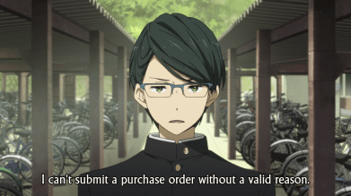 Hyouka 17 The Revelation 11 Published December 20, 2015 at 1280 × 720 in Hyouka, Episode 17 ← Previous Next → And amusing shot, all the vertical lines close in on Tanabe as Oreki closes off his escape routes.