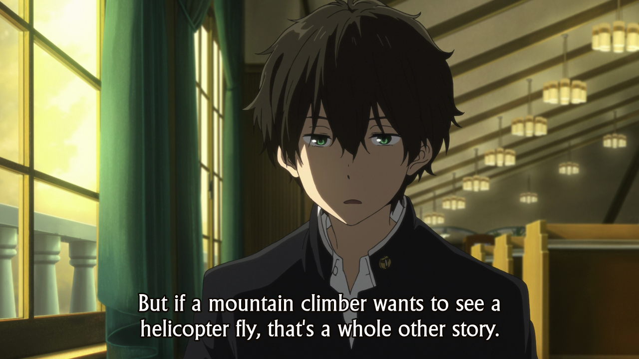 Hyouka 18 Freedom of Understanding Published January 1, 2016 at 1280 × 720 in Hyouka, Episode 18 ← Previous Next →
