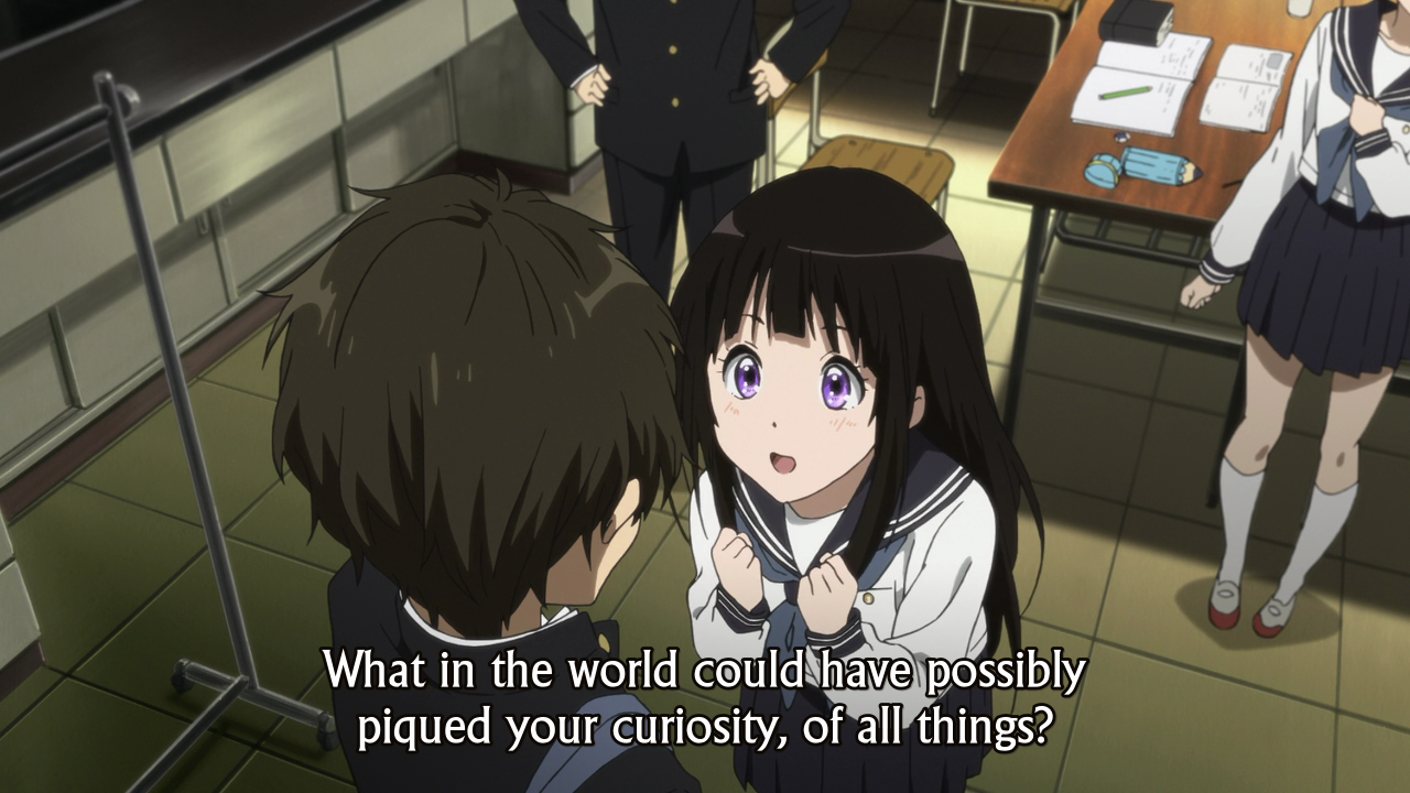 Hyouka 18 Oreki Mystery 10 Published January 1, 2016 at 1280 × 720 in Hyouka, Episode 18 ← Previous Next → (1/4) We see everything in context—Oreki in the corner of the screen.