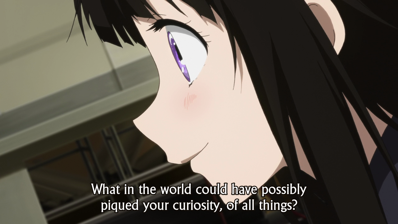 Hyouka 18 Oreki Mystery 11 Published January 1, 2016 at 1280 × 720 in Hyouka, Episode 18 ← Previous Next → (2/4) Canted profile shot, downward momentum towards Oreki.