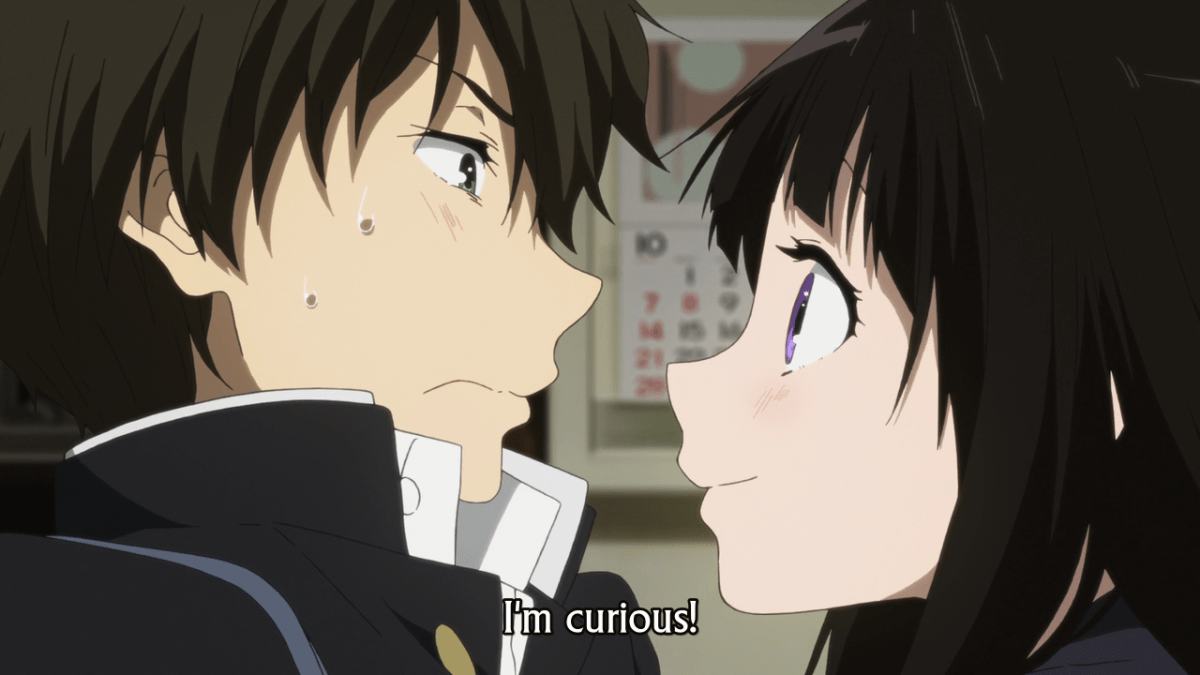 Hyouka 18 Oreki Mystery 14 Published January 1, 2016 at 1280 × 720 in Hyouka, Episode 18 ← Previous Next → In contrast to the other shots like this in the sequence, the full frame is used.
