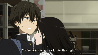 Hyouka 18 Oreki Mystery 6 Published January 1, 2016 at 1280 × 720 in Hyouka, Episode 18 ← Previous Next → (5/6) Oreki’s up against the edge of the frame again.