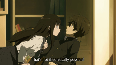 Hyouka 19 Mystery Answer 7 Published January 2, 2016 at 1280 × 720 in Hyouka, Episode 19 ← Previous Next → And again we see the classic body language play out once again.