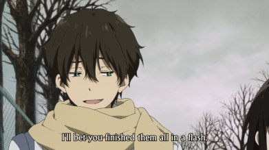 Hyouka 21 Oreki and Chitanda 1 Published February 7, 2016 at 1280 × 720 in Hyouka, Episode 21 ← Previous Next → [1/2] It starts with two parallel shots, as both Oreki and Chitanda tease each other good-naturedly.