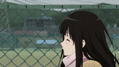 Hyouka 21 Oreki and Chitanda 13 Published February 7, 2016 at 1280 × 720 in Hyouka, Episode 21 ← Previous Next → [1/2] Chitanda smiles, but nearly half the screen is filled up with negative space, imply distance.