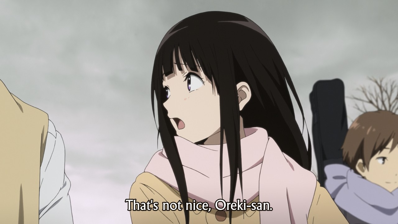 Hyouka 21 Oreki and Chitanda 2 Published February 7, 2016 at 1280 × 720 in Hyouka, Episode 21 ← Previous Next → [2/2] Chitanda’s shot is basically identical to Oreki’s as she responds with teasing of her own; these two have never been so much on the same wavelength with each other as they are now.